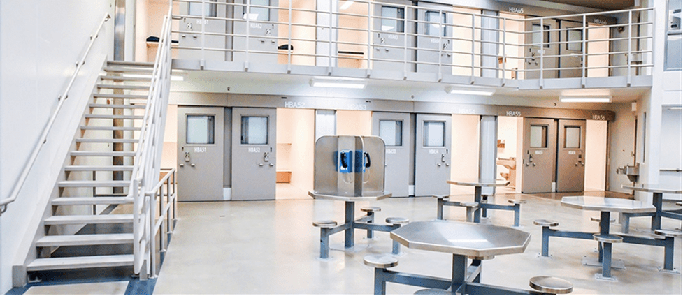 Imagen tipo de una cárcel del Condado de Los Ángeles (módulos individuales tras las puertas con cierre de seguridad).